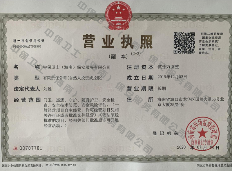 南昌邓浩职业培训与发展有限公司是经海南省公安厅批准,依法持有《保安服务许可证》,提供保安服务、门卫、巡逻、守护、区域秩序维护、随身护卫、安全检查的专业化保安服务公司。